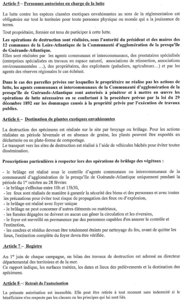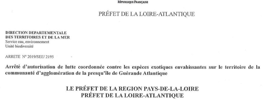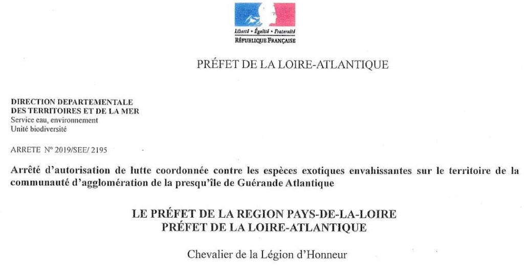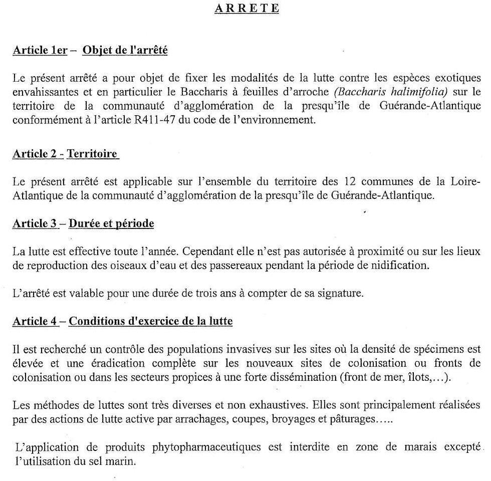 Arrêté préfectoral Baccharis pour Cap Atlantique