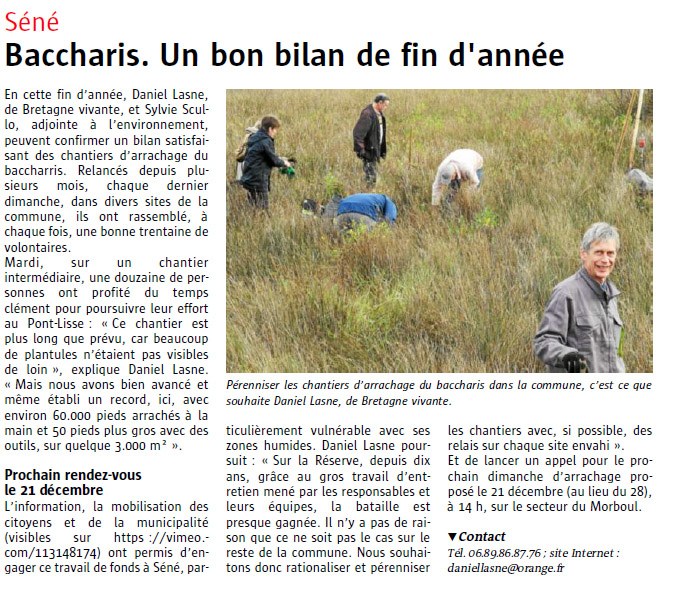 Baccharis. Un bon bilan de fin d’année (Ouest-France du 11/12/2014)