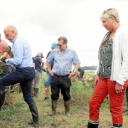 En Ria d’Etel, le sous-préfet met le pied au baccharrache pour arracher la plante envahissante