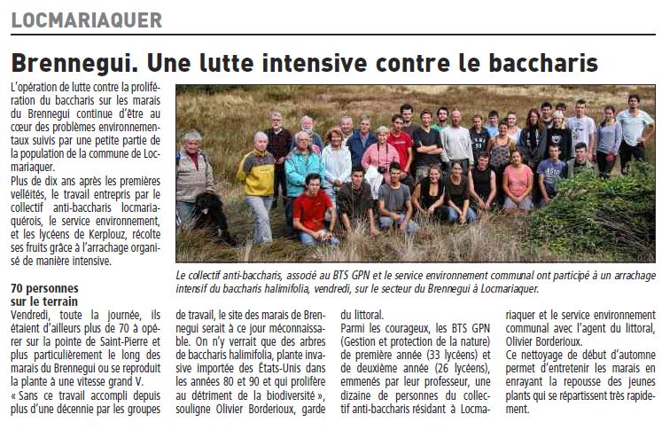 L’opération de lutte contre la prolifé-ration du baccharis sur les marais du Brennegui continue d’être au cœur des problèmes environnementaux suivis par une petite partie de la population de la commune de Loc- mariaquer.