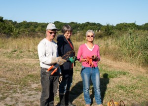 Une autre équipe est partie à la conquête de la partie sud de la saline munie des cisailles.Les journalistes sont venus nombreux : une équipe de France 3 Pays de la Loire, des journalistes de Ouest-France, Presse-océan et l’Echo de la Presqu’île. Le Président était donc plus occupé à répondre à leurs questions qu’à agir sur le terrain. Ils étaient les bienvenus car nos chantiers n’ont-ils pas pour but principal de sensibiliser la population.