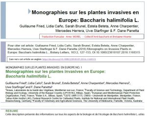 Cet article de Guillaume Fried (ANSES) a été publié en avril 2016 dans la revue Botany letters. Il a été traduit en français par Anne Morel (Collectif Anti-baccharis et Bretagne Vivante) et constitue un important résumé des données scientifiques sur cette espèce. Il pourra aider tous les acteurs de la lutte anti-baccharis et devrait favoriser l’élaboration d’un plan national de lutte contre le baccharis.