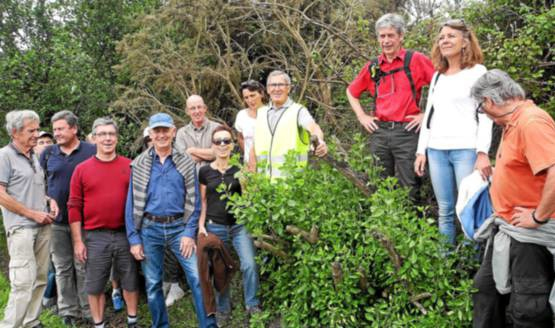 « Ça repousse, mais c’était bien pré- vu comme ça », explique Daniel Lasne. Le « Monsieur baccharris » sinagot de Bretagne vivante a entraîné avec lui, samedi, sa fidèle équipe de bénévoles pour une tour- née d’inspection de la repousse du séneçon en arbre (baccharis halimi- folia), une plante invasive qui appauvrit la diversité écologique des zones humides qu’elle colonise. Les divers chantiers menés par ces arracheurs infatigables, une à deux fois par mois depuis 2013, ont déjà permis une reconquête du paysage, sur plusieurs sites de la commune, et Daniel est heureux de pouvoir montrer (et faire goûter !) quelques brins de salicorne qui ont repris leur place et leur liberté de pousser, au ras du sol, mais en pleine lumière.